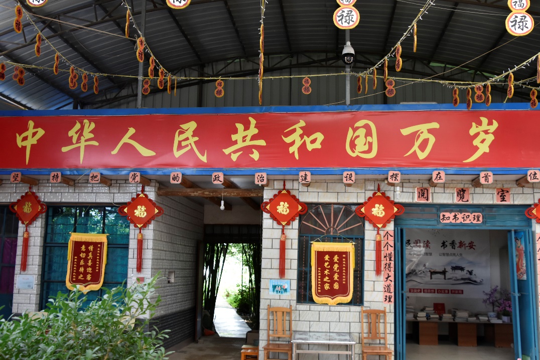 实践团队走进蒙自市新安所镇73岁的老党员张建生家中,鲜红的党旗、国旗映入眼帘,“中国共产党万岁”、“中华人民共和国万岁”这样的标语红色标语随处可见,一个不一样的“红色阵地”逐渐展现。跟随着张建生的步伐,实践队员逐渐了解到张建生的感人故事,张建生成为一名共产党员后,就把“一生为党,做无私奉献的人民勤务员”作为自己的责任和使命,他对工作充满热情,用群众喜闻乐见的方式宣传党的路线方针政策,弘扬主旋律,传播正能量。从工作岗位上退下来后,他依然心系党的事业,尽自己最大的能力传播党的声音,花了近10年的时间,亲手把自己家打造成一个“红色阵地”,在近150平方米的小院里,有“农家书屋”、有“盛世桃园”、有“实践广场”。院子里的任何摆设、物件也都有着特别的寓意,竹子象征坚韧不拔、无私奉献,石榴象征各民族像石榴籽那样紧紧抱在一起。张建生自豪地向队员们介绍到,2020年7月,政府来家中挂了两块牌,一块是“农家新时代文明实践教育培训基地”,另一块是“农家书院”,最近又挂了一块牌,叫“家庭党校”,说明“红色阵地”建对了!