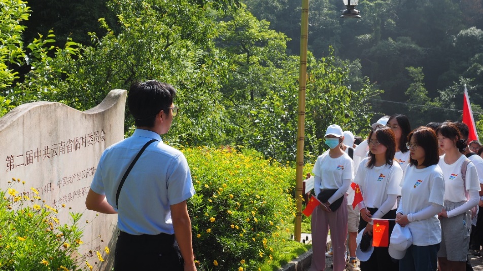 在工作人员的讲解带领下,实践团队全体成员怀着无比崇敬的心情走进中共云南第一次代表大会陈列馆聆听那一段深刻而难忘的革命岁月,瞻仰中共云南第一次代表大会会址,了解浮雕墙的“云岭星火、迤南风云、中国共产党云南第一次代表大会召开、红土先驱、解放蒙自”五个部分内容。1928年10月13日至14日,中国共产党云南第一次代表大会在蒙自查尼皮村共产党员李开文家的茅草屋里举行。出席会议代表17人,会议通过《中国共产党云南第一次代表大会决议案》,选举产生第二届中共云南临时省委。