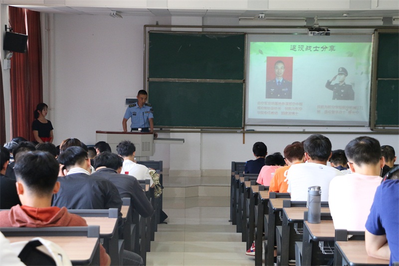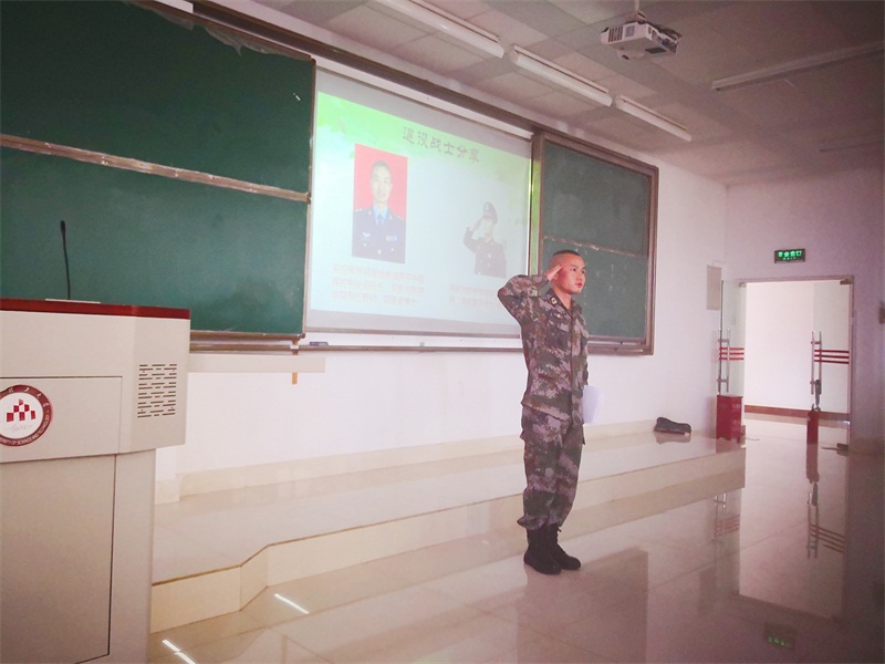 接下来,空军昆明基地某部退役军官郭建波老师和航空机械171班退役复学学生代表夏光宁分别从入伍选择、入伍经历、入伍感想等多个方面,分享了他们在军营里的生活和心路历程,鼓励同学们把爱国之心化为报国之行,趁年轻投身于军旅,提升和锻炼自我。他们的事迹打动了每一位听众,现场气氛热烈。