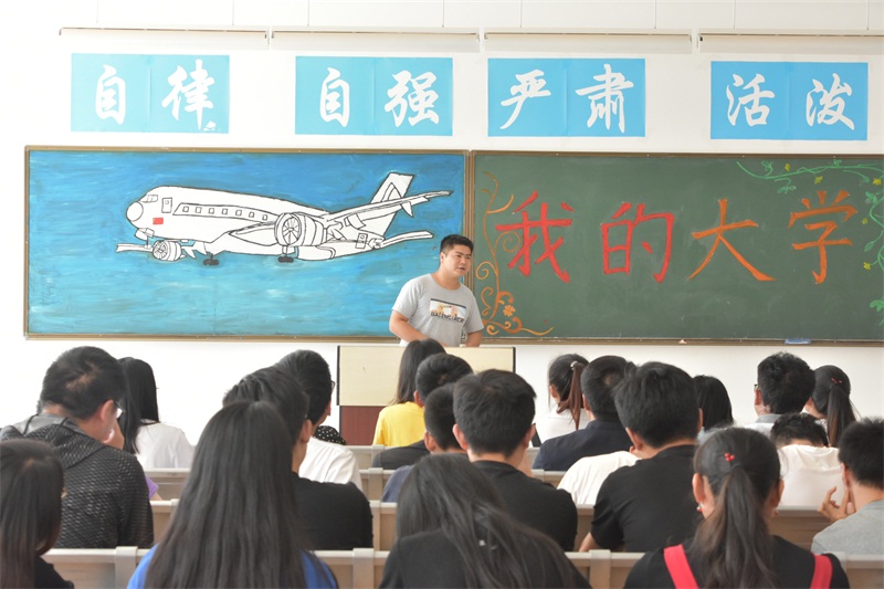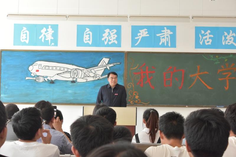 6月6日下午,校党委副书记、校长王学勤走进21点游戏 航空交运161班“我的大学”主题班会现场,与同学们交流分享大学生活点滴,勉励同学们为梦想努力奋斗拼搏。