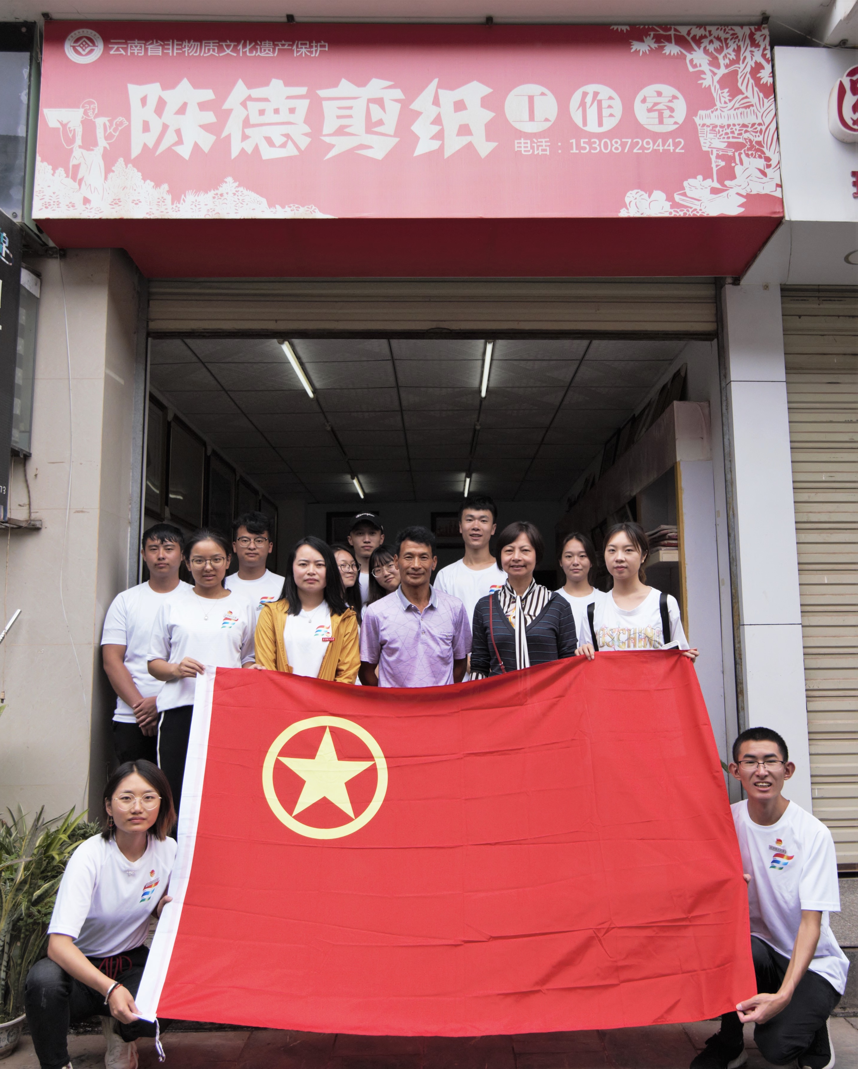 被誉为“中国民间扎染艺术之乡”的巍山县的扎染技术已经形成了工厂和企业,带动了当地的文化和经济,李石生先生就是传承扎染技术的一位彝族企业家。访谈中,李石生先生带领实践团队成员参观了扎染博物馆和扎染工厂,让队员们切身去认识扎染,讲述了自身30余年传承扎染的心路历程。彝乡南涧县也有剪纸艺术的流传,陈德先生用和蔼的微笑、最朴实的语言讲述着他对剪纸艺术的传承和坚持,作为云南省非物质文化遗产传承人,陈德先生将其一生融汇在剪纸中,一直在不遗余力地推广剪纸艺术,先后在云南省多所高校教授、推广剪纸技艺。“现在我做你们的老师,以后你们做我的老师更好”,这句朴实而简单的话实实在在地打动了每个人。