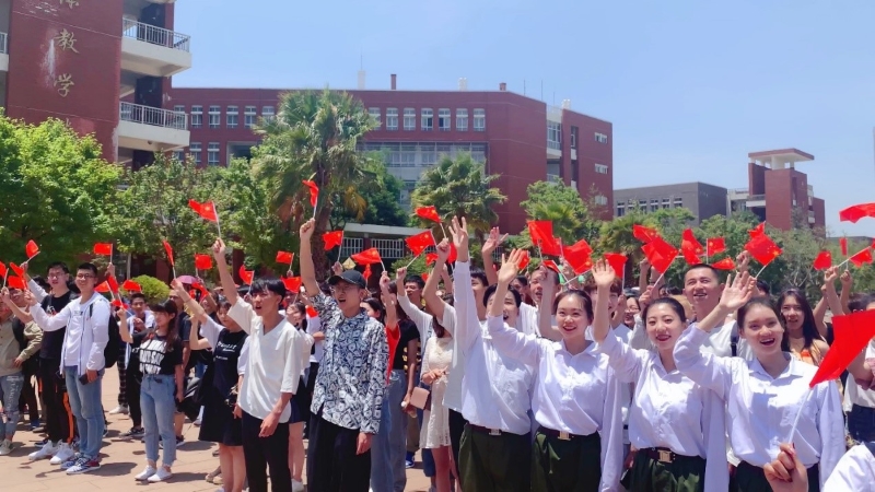 2019年5月16日中午,21点游戏 团委组织的“跳出青春梦、唱响祖国情”活动在呈贡校区图书馆前精彩亮相,吸引了全校近千名学生参与。学院师生精心编排,用最美的歌声和优美的舞蹈,表达对祖国的热爱,向祖国70年华诞献礼。