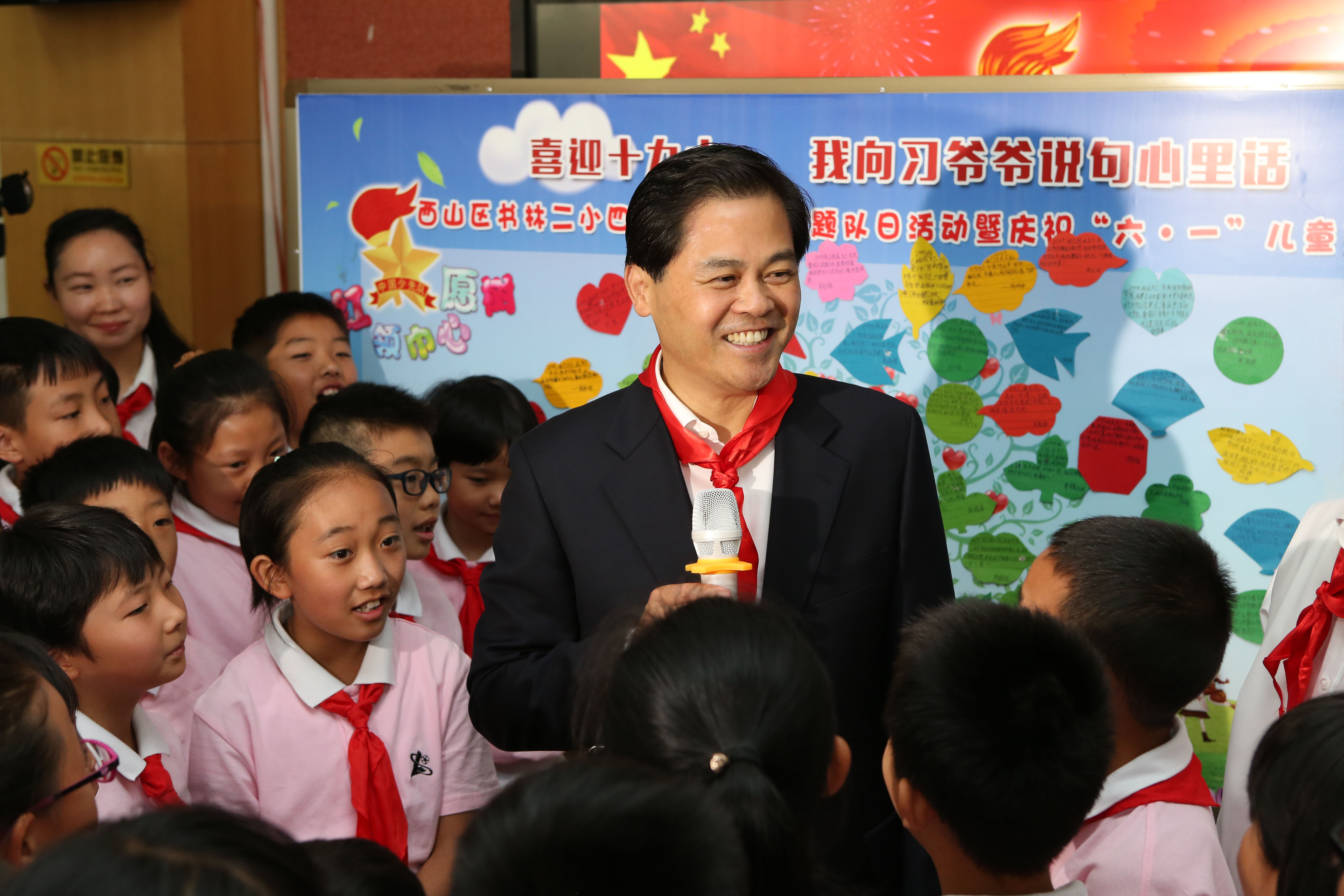 5月31日,在“六一”国际儿童节到来之际,省委书记陈豪来到昆明市西山区书林第二小学,参加少先队主题队日活动,并祝全省各族少年儿童和少先队员节日愉快。