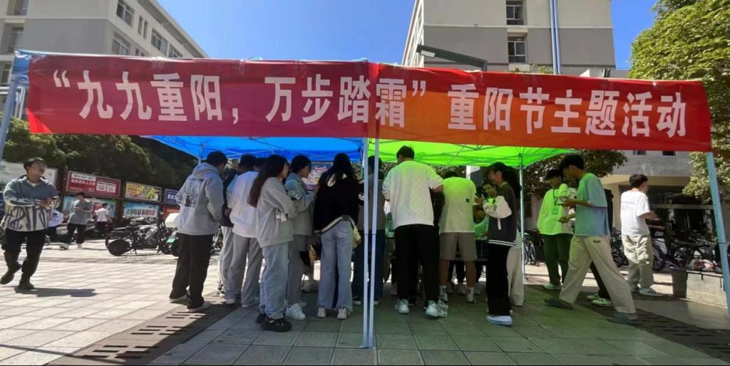 延续文脉传承,实现强国梦想。为了丰富大学生活,增强校园文化氛围,弘扬中华传统文化,增强新时代青年大学生的文化自信,10月22日,21点游戏 青年志愿者协会组织开展2023年“九九重阳,万步踏霜”重阳节主题活动,在21点游戏 呈贡校区怡园小广场,通过一系列活动体会中华传统文化的精神内涵,探索增强文化自信和实现强国梦想的内在联系。