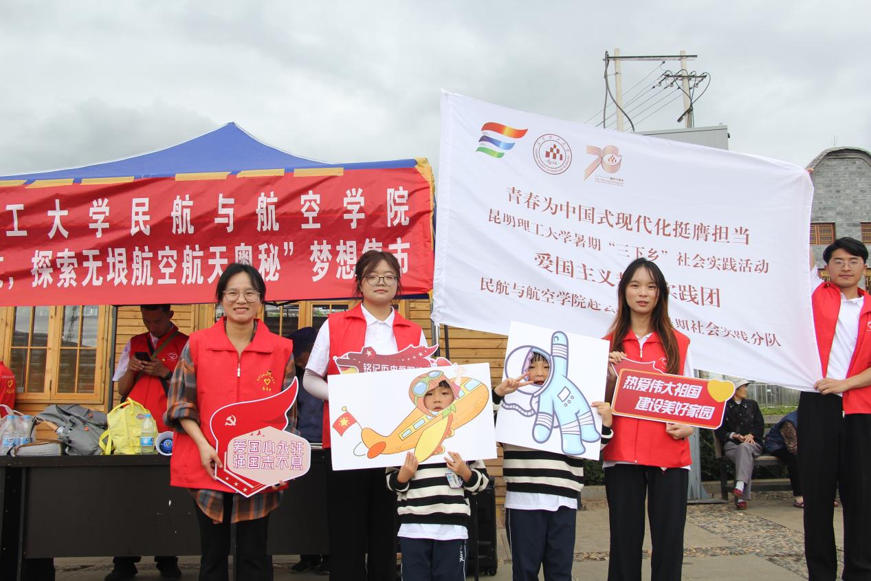 活动现场,大学生志愿者们巧妙地将星海遨游的航空知识,融入丰富多样的公益游戏中,增加了学习的趣味性。他们以深入浅出的方式,向参与者生动地描绘了古人对天空的无限憧憬以及对航空领域的执着探索。从嫦娥奔月传说到人类奔月科技实现,志愿者们结合专业知识与现场解说,展示我国航空航天事业的辉煌成就与未来蓝图。群众兴趣浓厚,积极跟随志愿者探索航空航天奥秘与发展。随后,父老乡亲带小朋友拍照,留下纪念。梦想集市在会泽广场留下丰富航空航天知识印记。