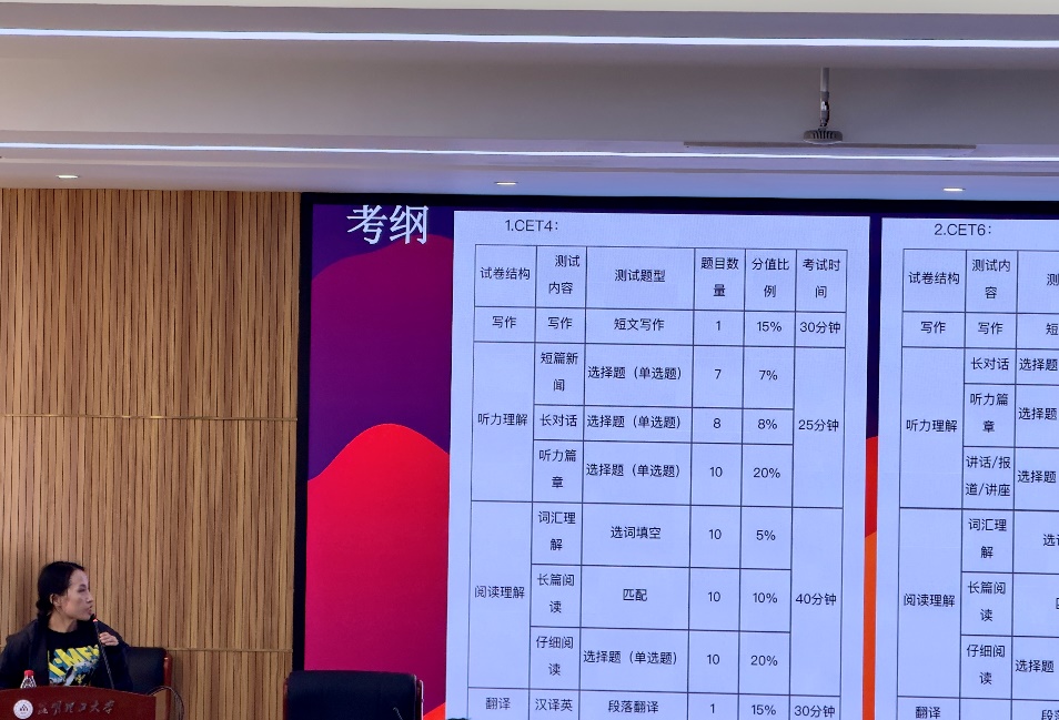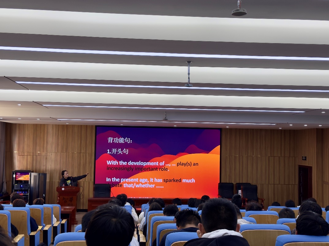 李碧娟老师以英语四级考试的全面内容为核心做了经验分享,涵盖了听力、阅读、写作以及翻译等多个关键环节。她凭借丰富的经验,在讲解过程中,抽丝剥茧、化繁为简,全力帮助学生透彻把握考试结构与内容,娴熟运用各种应试策略与技巧。同时,考试在即,李碧娟老师还重点培养学生的得分能力,帮助他们形成有效的得分策略和方法。