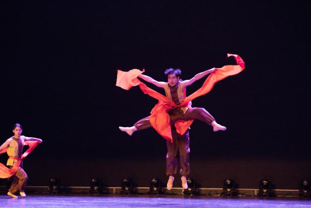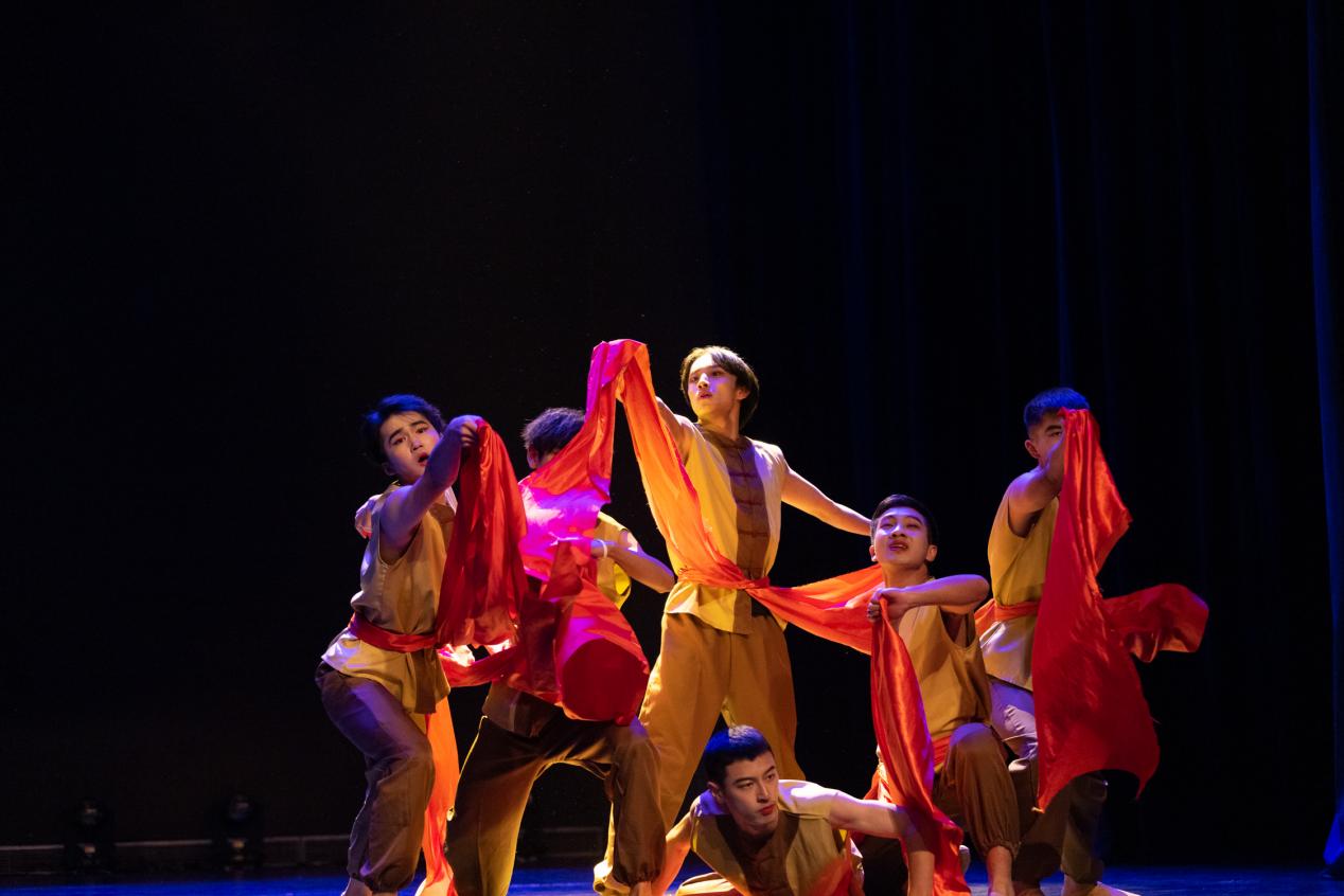 昨日的东方,有一个古老的国度。今日的东方,有一个伟大的国家。忆往昔,峥嵘岁月。看今朝,红遍东方。我院选送作品《东方红》舞蹈以中国汉族民间舞蹈为素材提炼动作并进行编创,体现了一个苦难的民族冲破黑暗走向光明的艰辛历程。这是一曲善良的人们从贫弱走向富强的赞歌,舞蹈高潮部分,舞者随着旭日初升一同缓慢从地面站起,全场震撼,雷鸣般的掌声经久不息。