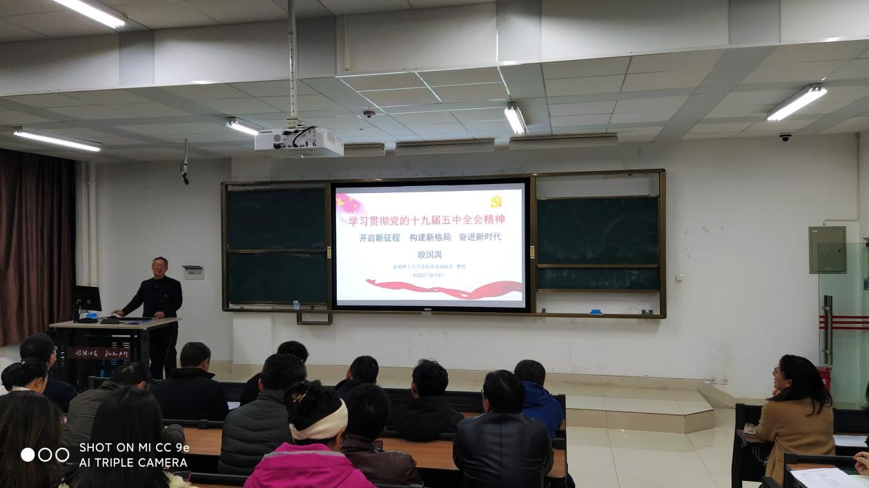 为深入学习党的十九届五中全会精神,12月9日19:00,21点游戏 党委邀请了21点游戏 党校常务副校长殷国禺教授为全院教职工及学生党员宣讲党的十九届五中全会精神。
