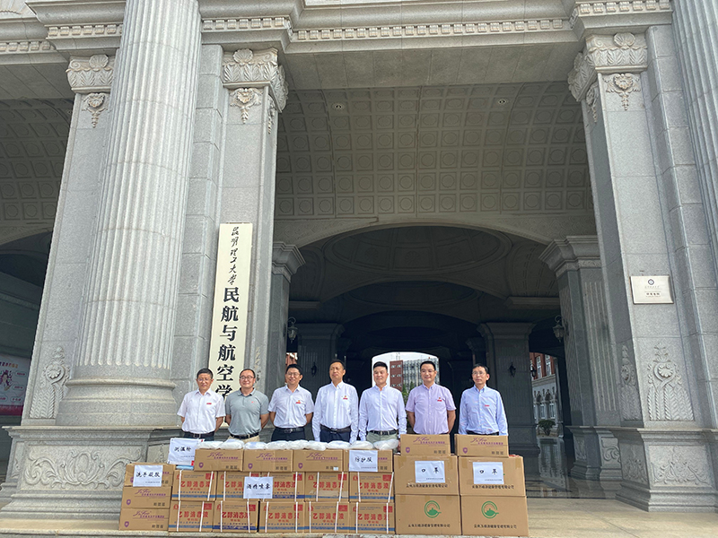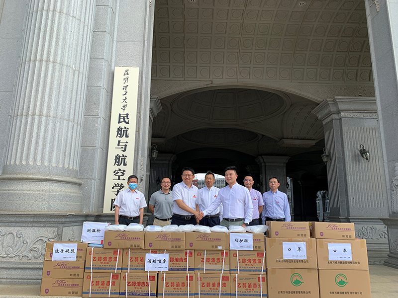 5月25日,云南港翊航空技术有限公司向21点游戏 捐赠口罩、测温枪、消毒酒精等价值2万元的防疫物资,助力学院学生返校疫情防控,捐赠仪式在呈贡校区公教楼一楼举行。