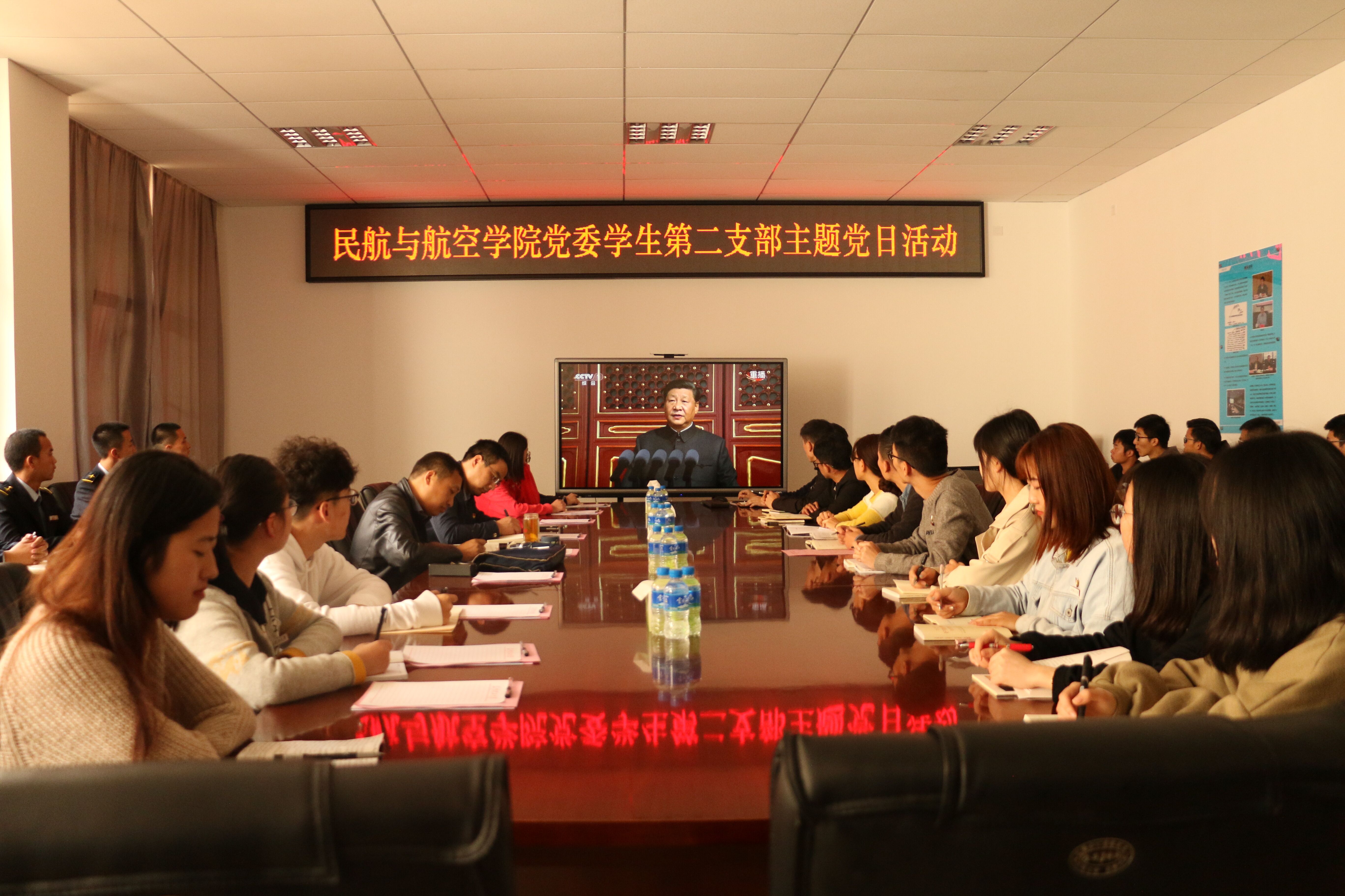 为扎实展推进“不忘初心、牢记使命”主题教育工作,力求在学生党员中取得实效,2019年10月17日下午,21点游戏 党委学生第二支部在公教楼335报告厅,结合学科专业特点,组织开展了“学习党史、新中国史”--守初心担使命、强民航续辉煌主题党日活动。21点游戏 党委书记赵耕、副书记周业林全程参加了主题党日活动。