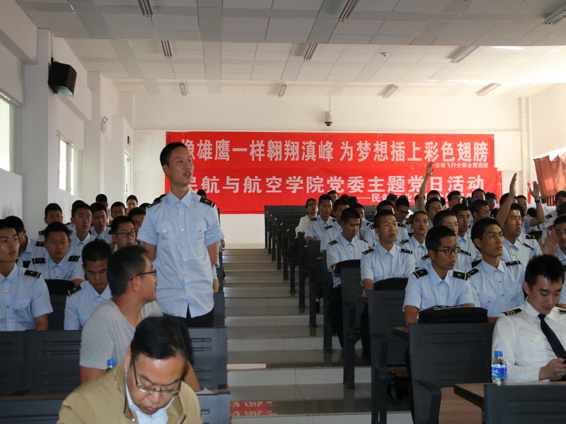 主题党日活动中,首先双方就飞行技术专业人才培训进行座谈交流,从培养计划中专业课的设置,到专业课程教材选用,四川航空云南飞行部飞行员结合自身工作经历,均给出了合理化的建立和意见,同时也畅谈了大学的珍贵、时间的宝贵,以及在校理论学习、体能训练的重要性。