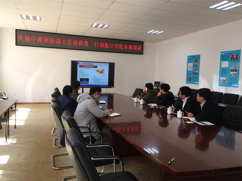会上,李书记和沈院长对中教国际孙主任一行的到来表示热烈欢迎,朱副书记向孙主任一行详细介绍了航空学院的办学历史、筹备历程、专业设置以及实验室建设等情况。孙洪墨副主任介绍了中教国际办学和培训有关情况,特别是国际合作办学情况。双方围绕航空人才培养、国际交流及合作办学进行了深入的交流探讨。