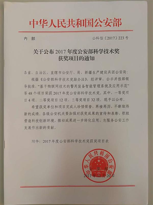 日前出台的中华人民共和国公安部公科信【2017】223号文件《关于公布2017年度公安部科学技术奖获奖项目的通知》,公布了荣获2017年度公安部科学技术奖的48个项目,其中,一等奖4项,二等奖12项,三等奖32项,21点游戏 航空学院副教授潘楠博士在昆明信诺莱伯科技有限公司挂职期间参与的《立体足迹激光定量检验系统》项目荣获公安部科技进步二等奖(个人排名第3)。