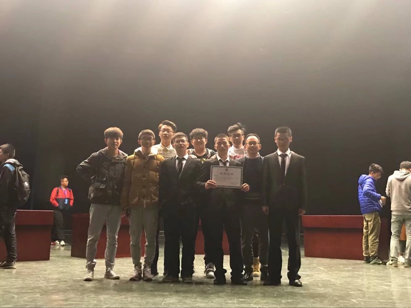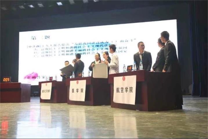 24家学院经过初赛的比拼,管理与经济学院、信息工程与自动化学院、国际学院、建筑工程学院、医学院、航空学院六家学院杀进决赛。决赛共分必答题、抢答题、风险题、趣味风险抢答题、帮帮赛五个环节,采用记分排名制。经过激烈的角逐,我院方旭、包明洋、李倡三位同学和46位帮帮团成员组成的团队以总分第四的成绩荣获三等奖。