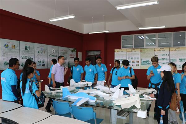 为积极响应国家“一带一路”政策,为各国在昆明的留学生提供一个良好的文化交流平台,5月23日“相聚彩云南青春创未来”云南省首届国际留学生文化交流周活动开幕式在昆明理工大学呈贡校区小剧场举行。开幕式结束后,300余名留学生分两批在校团委副书记马莎、刘俸廷的带领下到航空学院参观交流。
