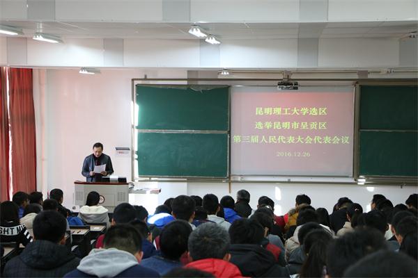 2016年12月26日,呈贡区第三届人民代表大会21点游戏 选区选举大会在我校呈贡校区隆重举行。我院作为23个分会场之一,在公教楼344召开了选举大会,全院共有176名符合选举资格的师生选民参加选举投票,选举大会由学院党委副书记赵耕主持,选举大会在庄严的国歌声中正式开始。