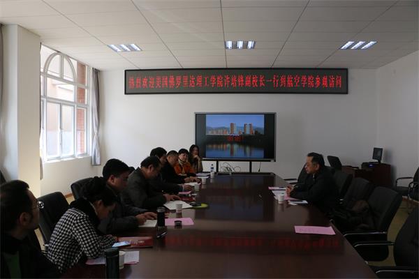 12月30日下午,美国佛罗里达理工学院教授、许培锋副校长一行在国际学院院长介俊等陪同下到航空学院访问座谈,航空学院沈颖刚副院长等参加座谈,王华副校长出席座谈会并讲话。