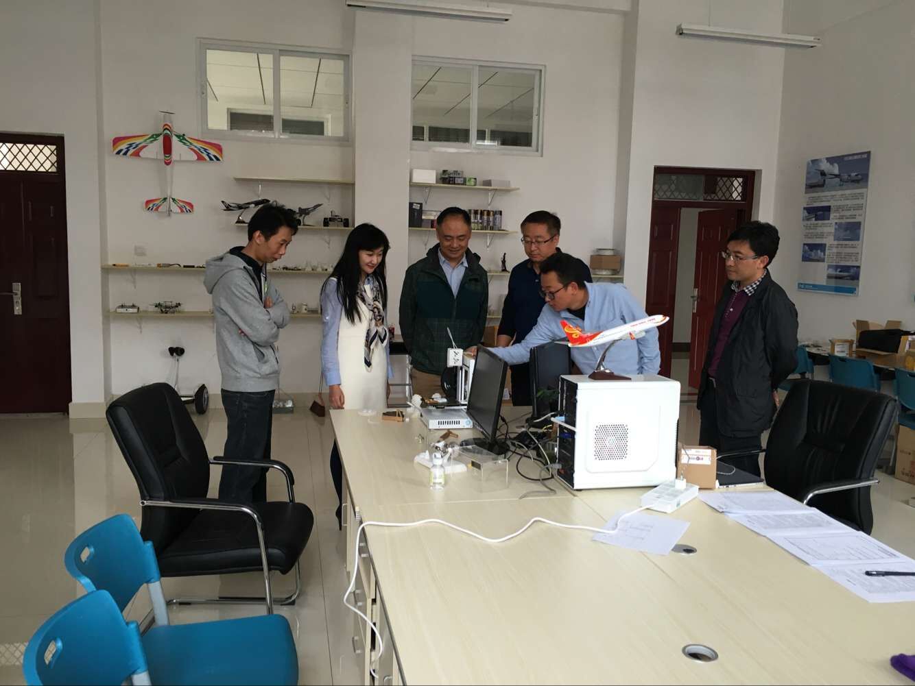 2016年9月29日上午,云南敦翼航服科技有限公司总经理邵云伟一行到航空学院参观并洽谈合作事宜,校办主任潘金军陪同参观。航空学院党委副书记赵耕、副院长沈颖刚、刘增力出席洽谈会。