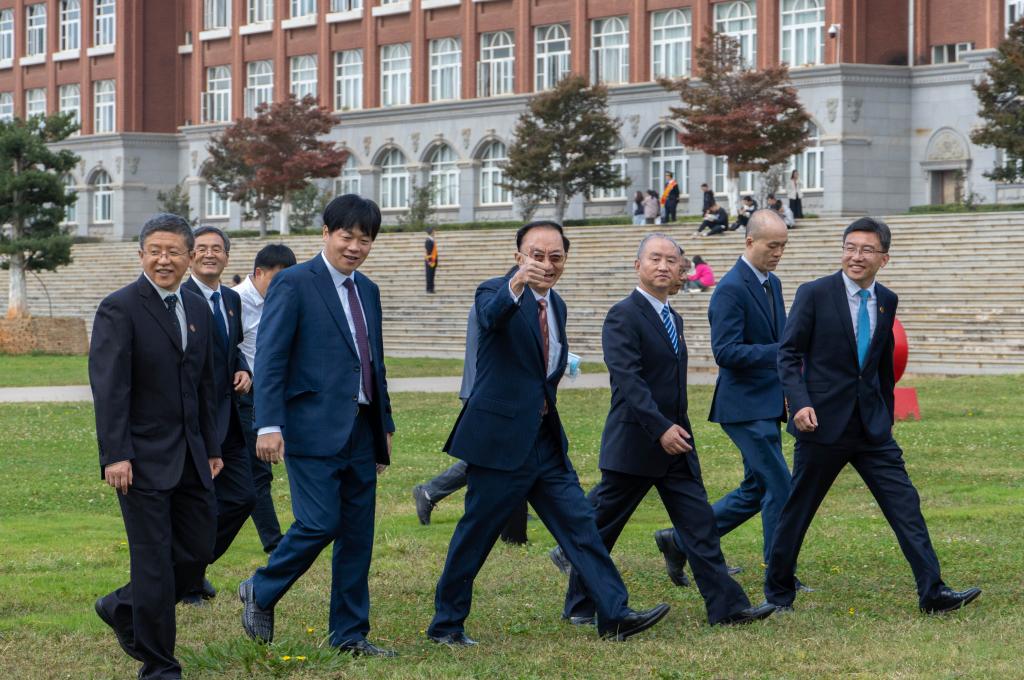 仪式结束后,林高演一行与唐家华,学校党委副书记蔡金红,潘学军,学校相关部门和学院负责人座谈交流。