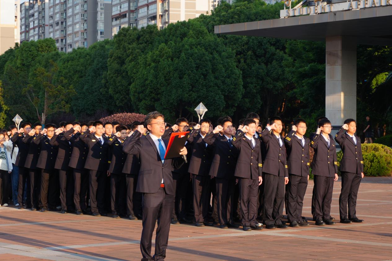 学院党委书记朱兴东带领全体师生庄严宣读“蓝天誓言”,铿锵誓言彰显了民航学子矢志航空报国的赤诚初心。