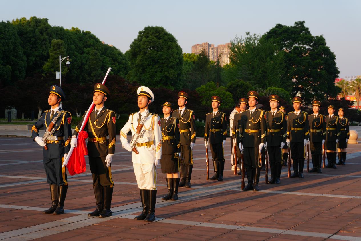 全体师生肃立注目,高唱国歌,五星红旗迎着朝阳冉冉升起,现场氛围庄严肃穆。