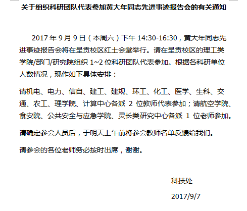 关于组织科研团队代表参加黄大年同志选进事迹报告会的有关通知