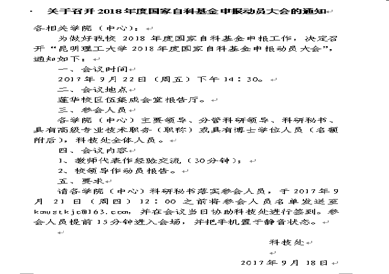 关于召开2018年度国家自科基金申报动员大会的通知