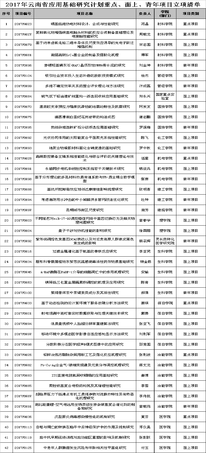 《关于提交2017年度云南省应用基础研究计划项目任务书、经费预算书纸质材料的通知》已发布至科技网请及时关注,材料提交截止日期9月30日,请通知项目负责人按时提交材料。