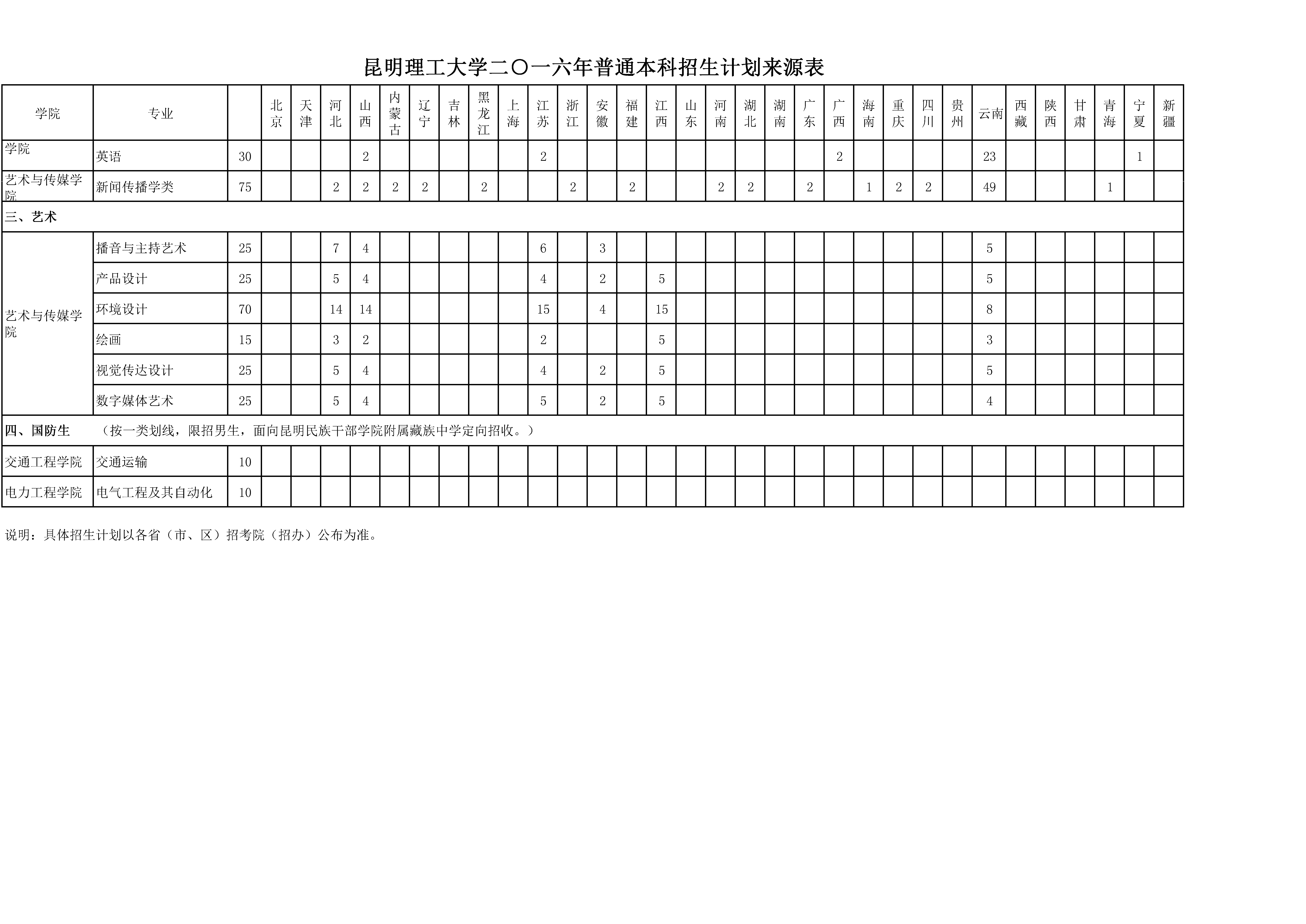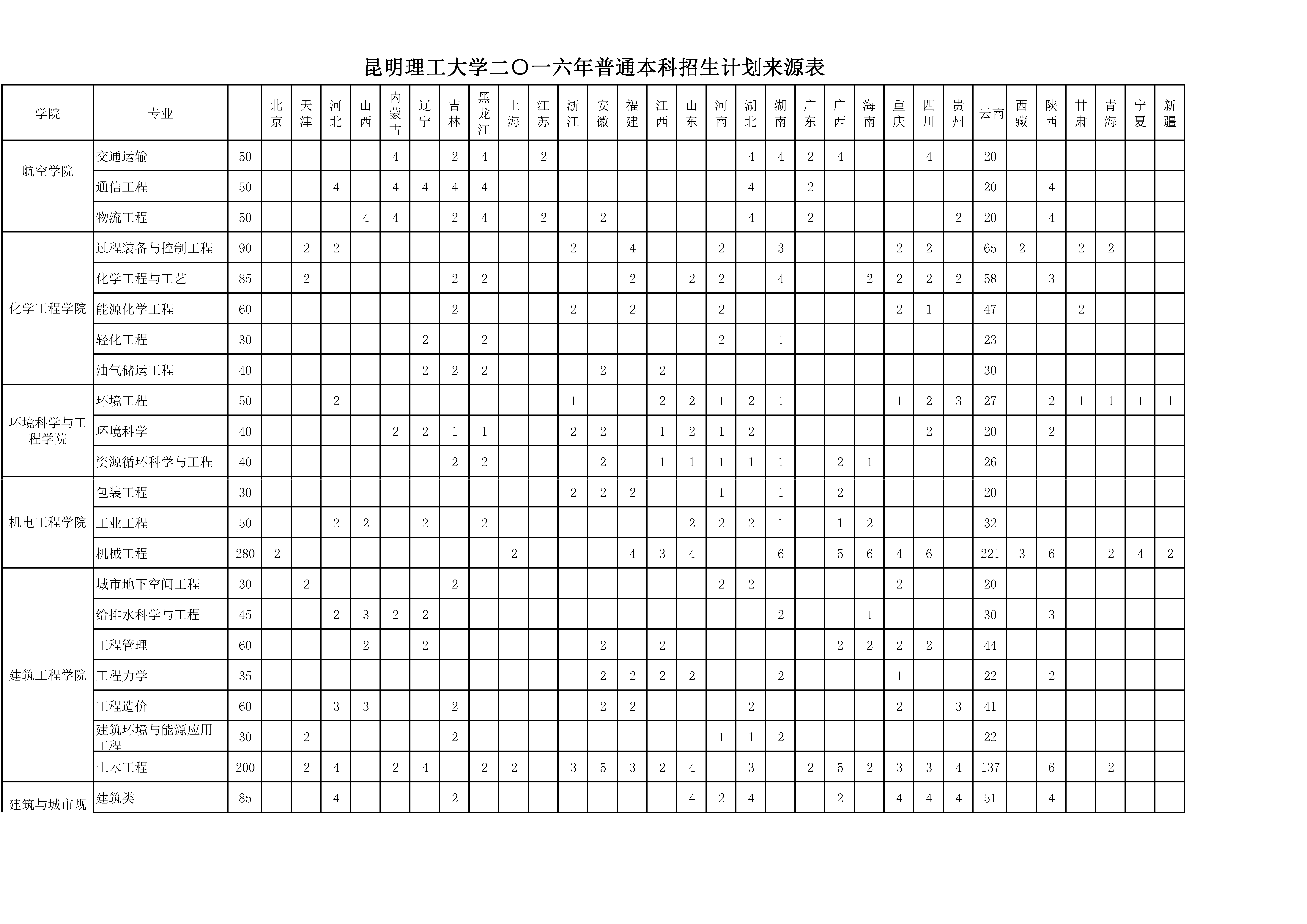 21点游戏 2016年普通本科招生计划来源表