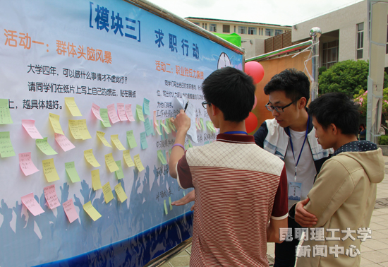 4月20日至24日,学校就业指导中心主办的职业生涯规划体验活动在呈贡校区怡园学生社区举行,来自各学院的500余名学生参加活动。活动包括探索未知的自己、探索工作世界和求职行动三个模块,每个模块又包含3个生涯体验活动;旨在通过现场体验,增强学生的职业兴趣,推动学生掌握自我认知、职业认知、学业规划、生涯决策、行动力以及生涯反思等方面的知识和方法,以促进学生尽早开展大学生涯规划。