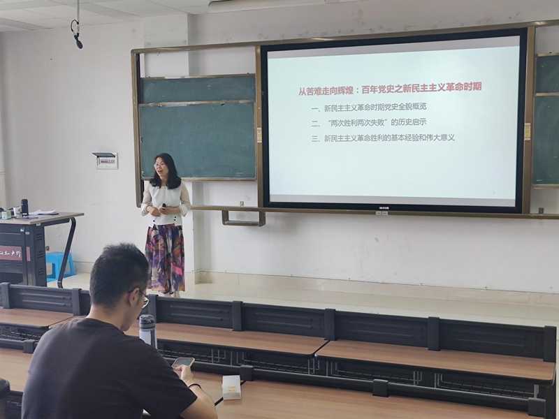 苗艳丽老师以《从苦难走向辉煌:百年党史之新民主主义革命时期》为题,阐述了新民主主义革命时期党史全貌概览、“两次胜利两次失败”的历史启示、新民主主义革命胜利的基本经验和伟大意义。